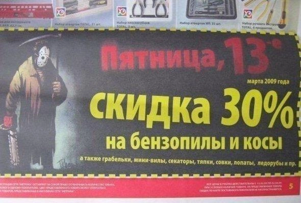 Страшнее, чем пятница, 13-е, зверя нет! В старину ею пугали даже милиционеров, дворников и бабаек. В старину считалось: встретить пятницу, 13-е, с пустым ведром, а не с полным медовухи, там, какой-нибудь — к еде!